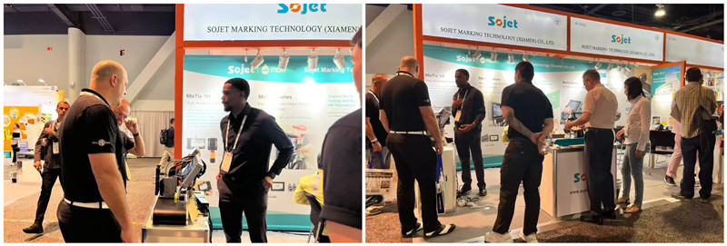 不止昇捷丰展台,整个拉斯维加斯会展中心都洋溢着 “行业盛宴” 的热烈氛围:全球包装、加工及供应链领域企业齐聚,前沿自动化设备琳琅满目。昇捷丰展台前,团队向客户细致讲解喷码机的性能参数与应用场景,同步收获 “设备可提升生产效率” 的积极反馈;客户纷纷驻足加微信、换名片,隔壁展台同行亦前来交流技术。对昇捷丰而言,参展不仅是推广产品,更是深度捕捉海外市场需求、洞察行业前沿趋势,为后续产品优化与方案升级积蓄力量。