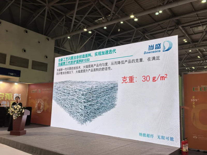 在第109届中国国际劳动用品交易会上,当盛携品牌全球首款轻柔防护服面料产品强势亮相,成为展会现场的焦点之一。展会上,当盛副总经理刘爽女士深入剖析了当前防护服市场的核心痛点,并正式推出当盛全新防护服面料产品R1030及差异化新品“有色系列”,以创新技术重构行业未来。