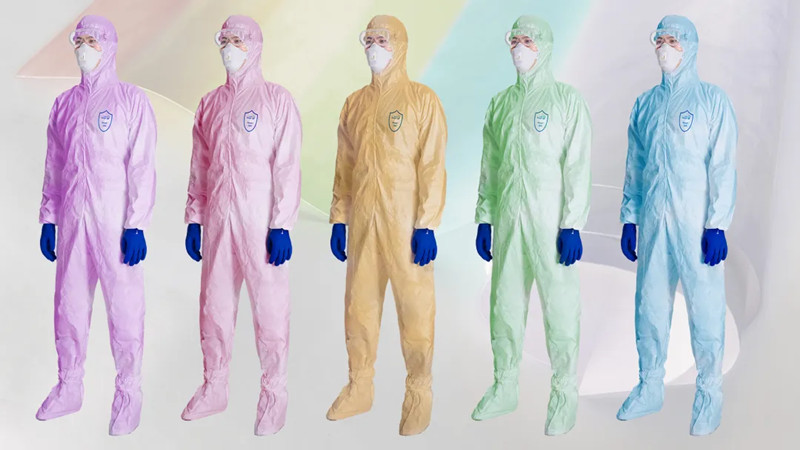 在推出R1030的同时,当盛还带来了一款差异化新品——有色系列防护服。这一系列的最大亮点在于其创新的色彩设计和功能定位。与传统防护服单一的白、蓝、灰色调不同,有色系列采用了鲜明的色彩搭配,如荧光绿、亮橙色和深蓝色等,不仅提升了产品的视觉吸引力,还赋予了个人防护装备更多功能性和实用性。